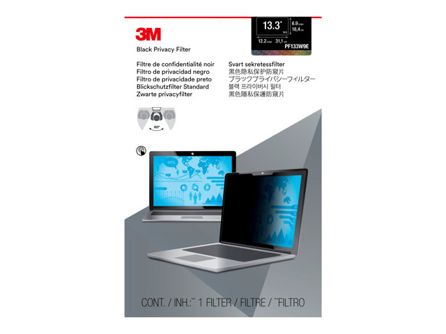 Filtre de confidentialité 3M for 13.3" Laptops 16:9 with COMPLY - Filtre de confidentialité pour ordinateur portable - largeur 13,3 pouces - noir PF133W9E