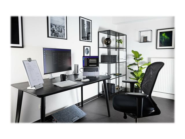 Grâce au rehausseur ergonomique et refroidissant Easy Riser Go avec SmartFit de Kensington , vous pouvez régler la hauteur de votre écran tout en profitant d'une meilleure circulation de l'air. Doté d'un design 2-en-1 élégant, il permet d'ajuster la hauteur et l'inclinaison afin d'améliorer la posture, la position du regard et le confort des épaules et du cou, tout en s'assurant que les composants internes de l'ordinateur portable ou de la tablette ne surchauffent pas. Ses patins antidérapants empêchent tout glissement, ses parties rembourrées maintiennent votre appareil en place et son design pliable facilite le transport. S'utilise avec un clavier et une souris externes (vendus séparément). Ce produit est compatible avec les ordinateurs portables et tablettes jusqu'à 14"