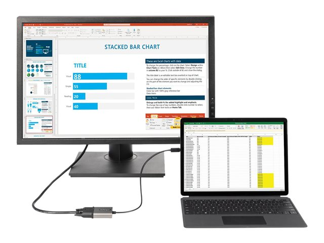 Cet adaptateur USB-C vers DVI permet de diffuser des signaux vidéo DVI à partir du port USB Type-C de votre ordinateur portable, smartphone ou autre appareil USB-C.