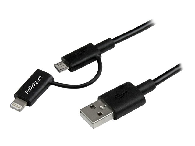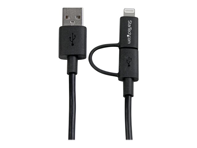 StarTech.com Câble Lightning 8 broches ou Micro USB vers USB de 1 m - Cordon de charge / synchronisation - Noir (LTUB1MBK) - Câble de chargement / de données - USB mâle pour Micro-USB de type B, Lightning mâle - 1 m - blindé - noir - pour P/N: ARMTBLTDT, ARMTBLTIW, SECTBLTDT, SECTBLTPOS, STNDTBLT1A5T, STNDTBLT1FS, STNDTBLTMOB