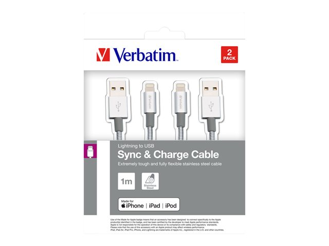 Verbatim Sync & Charge - Le kit câble - Lightning mâle mâle - 1 m - argent