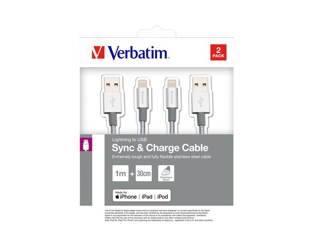 Verbatim Sync & Charge - Le kit câble - Lightning mâle mâle - argent