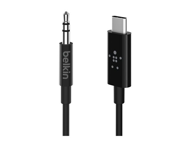 Belkin RockStar - Câble audio - 24 pin USB-C mâle pour mini-phone stereo 3.5 mm mâle - 91.4 cm - blanc F7U079BT03-BLK