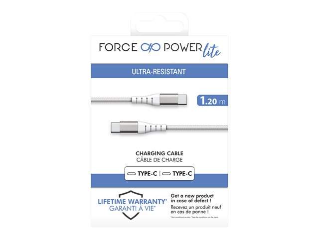 Force Power - Câble USB - 24 pin USB-C (M) pour 24 pin USB-C (M) - 3 A - 1.2 m - blanc