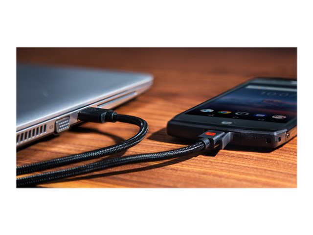 Moins vous passez de temps à charger votre smartphone, plus vous pouvez en profiter! Doté de connecteurs universels USB et USB-C, le câble blindé Crosscall compatible Quick Charge 3.0 vous permet de transférer vos données et vidéos, mais surtout de redonner à votre mobile toute son autonomie avec un temps de charge optimisé. Réversible, il s'insère dans les deux sens pour plus de facilité d'utilisation. Sa gaine en nylon lui offre une résistance sans faille.