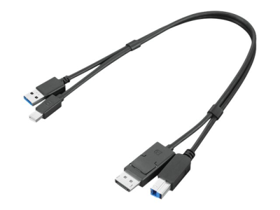 Lenovo Dual Head - Affichage/kit de câble USB - USB type A, DisplayPort (M) pour USB Type B, Mini DisplayPort (M) - USB 3.0 - 43 cm - noir - pour ThinkCentre M75t Gen 2; ThinkStation P340; P350 4X91D11453