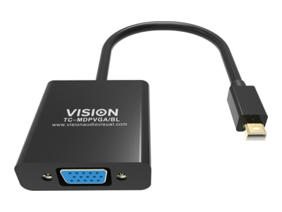 Pourvu d'une prise VGA de taille standard, ce convertisseur se branche sur une prise Mini DisplayPort (également appelée Thunderbolt). Le circuit actif convertit le signal numérique en signal VGA analogique pour les dispositifs d'affichage sans entrée numérique.