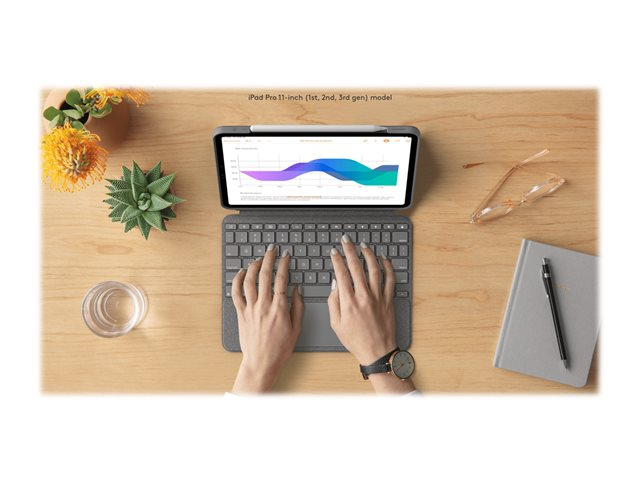 Logitech Combo Touch - Clavier et étui - avec trackpad - rétroéclairé - Apple Smart connector - AZERTY - Français - gris oxford - pour Apple 11-inch iPad Pro (1ère génération, 2e génération, 3ème génération)