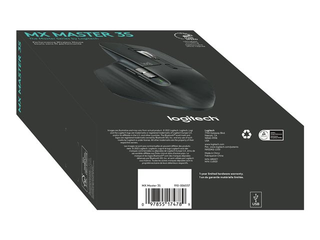 Logitech Master Series MX Master 3S - Souris - ergonomique - optique - 7 boutons - sans fil - Bluetooth, 2.4 GHz - récepteur USB Logitech Logi Bolt - graphite 910-006559