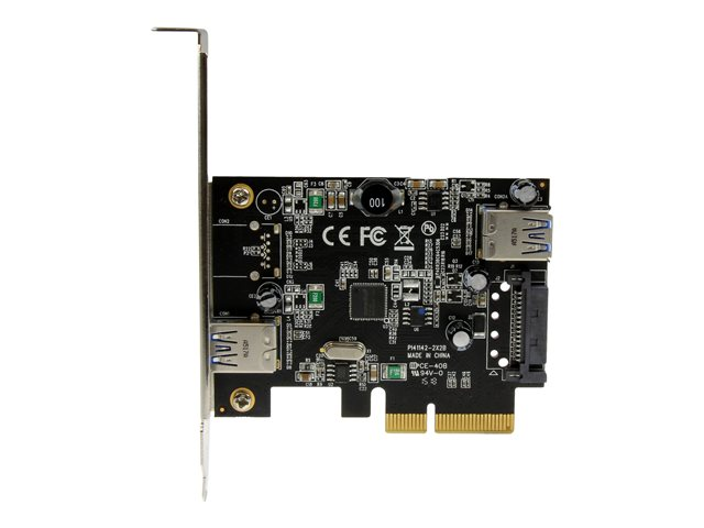 Cette carte USB 3.1 Gen 2 vous prépare à la prochaine génération de performance USB, à l'intérieur et à l'extérieur de votre ordinateur. Cette carte à 2 ports ajoute un connecteur interne Type-A et un connecteur externe Type-A à votre ordinateur de bureau, avec une bande passante combinée jusqu'à 10 Gb/s. Pour les appareils gourmands en énergie, cette carte possède aussi un connecteur d'alimentation interne SATA, qui vous permet d'utiliser la source d'alimentation de votre ordinateur pour donner plus de puissance aux ports.