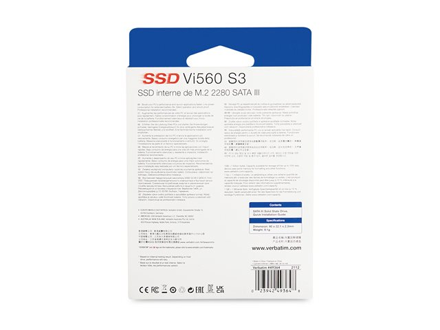 Les SSD internes Verbatim SATA III M.2 2280 peuvent revigorer les performances de votre système. Dotés de la technologue 3D NAND, ils constituent le moyen parfait pour la mise à niveau à partir d'un disque dur ou d'un disque SSD moins récent. Le disque Vi560 est doté d'un contrôleur supérieur offrant une meilleure fiabilité, des capacités plus élevées et des débits en lecture/écriture plus rapides.