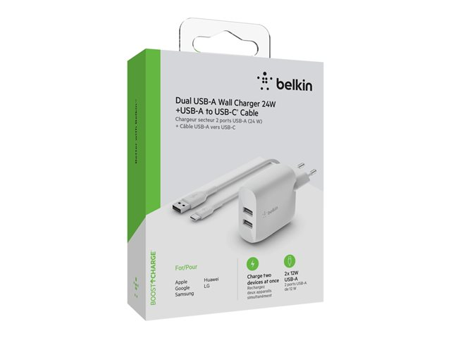 Belkin BOOST CHARGE - Adaptateur secteur - 24 Watt - 2 connecteurs de sortie (USB) - blanc