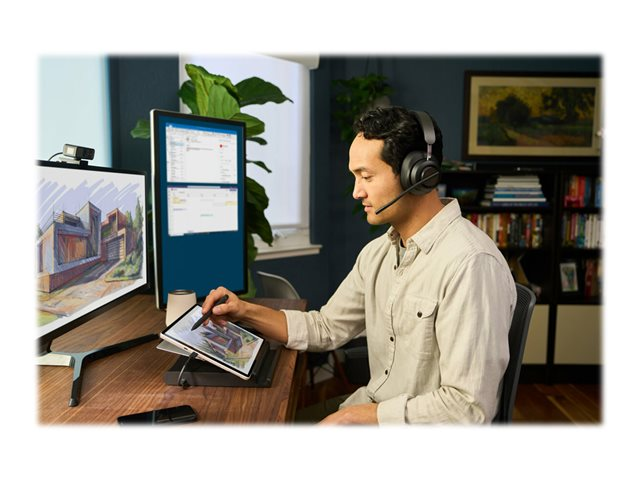 Le micro-casque Bluetooth H3000 de Kensington offre une expérience immersive et subtile, la liberté de mouvement du sans fil et une technologie audio supérieure. Les écouteurs à mémoire de forme avec gel refroidissant recouverts d'un tissu à transfert de chaleur offrent un confort longue durée. Les témoins lumineux confirment le statut et réduisent les distractions. De plus, les commandes de musique avec technologie de détection d'appels simplifient les transitions et l'effet vocal (Sidetone) optimise les appels. Les haut-parleurs dynamiques de 40 mm en néodyme vous offrent une expérience audio de pointe pour les appels et la musique. La batterie longue durée avec technologie de chargement rapide vous permet d'utiliser le casque pendant qu'il se recharge. Le micro-casque H3000 fait partie de l'écosystème de visioconférence professionnelle de Kensington. Vous bénéficiez ainsi d'une expérience intégrée qui vous permet de consacrer plus de temps à accroître votre productivité.