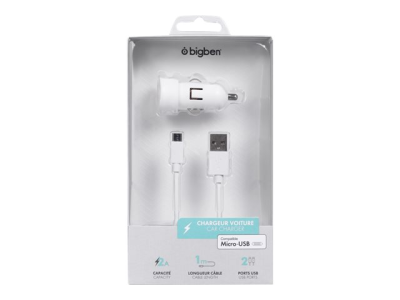 BIGBEN Connected - Adaptateur d'alimentation pour voiture - 2.4 A - 2 connecteurs de sortie (USB) - blanc MINICAC2AMICWBB