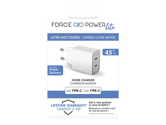 BIGBEN Connected Force Power - Adaptateur secteur - 45 Watt - PD (2 x USB-C) - blanc