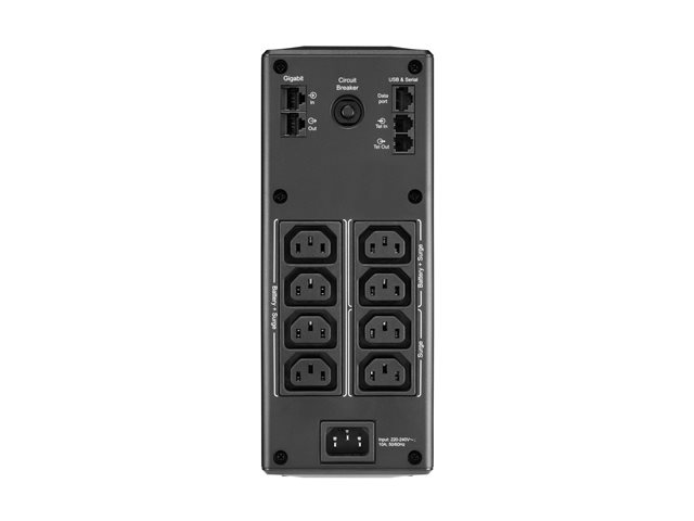 | Détails sur les connecteurs de sortie | 6 x alimentation (anti-coupures et anti-surtensions) 2 x alimentation (anti-surtensions) |