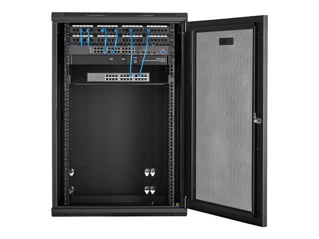 StarTech.com 18U 19" Wall Mount Network Cabinet, 16" Deep Hinged Locking IT Network Switch Depth Enclosure, Assembled Vented Computer Equipment Data Rack with Shelf & Flexible Side Panels - 18U Vented Cabinet (RK1820WALHM) - Armoire de rack - montable sur mur - noir - 18U
