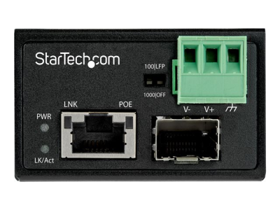 StarTech.com Convertisseur Fibre RJ45 PoE+ Industriel 30W - SFP vers RJ45 - Gigabit Fibre Optique Mono Mode/Multi Mode vers Cuivre - Mini Boîtier IP-30 Durable / -40 à +75°C (IMC1GSFP30W) - Convertisseur de média à fibre optique - 1GbE - 1000Base-SX, 1000Base-T - RJ-45 / SFP (mini-GBIC) - jusqu'à 10 km IMC1GSFP30W