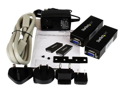 L'extendeur vidéo VGA sur Cat5 ST121UTPEP - Point à Point vous permet de connecter un écran/projecteur à une distance d'au plus 80 m de la source du signal VGA. Le modèle ST121UTPEP est un kit complet qui inclut une unité à la fois locale et distante, offrant ainsi une solution de bout en bout pour une connexion unique source/écran et permettant une transmission du signal VGA source sur un câble Ethernet standard (Câble UPT Cat5 ou supérieur, terminaison avec connecteurs RJ45).