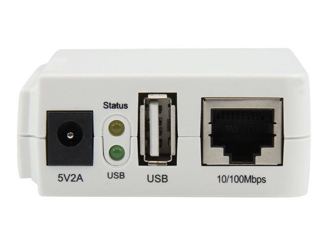StarTech.com Serveur d'impression USB 2.0 sans fil N avec port Ethernet 10/100 Mb/s - 802.11 b/g/n et 150 Mb/s - Blanc - Serveur d'impression - USB 2.0 - 10/100 Ethernet x 1 - blanc