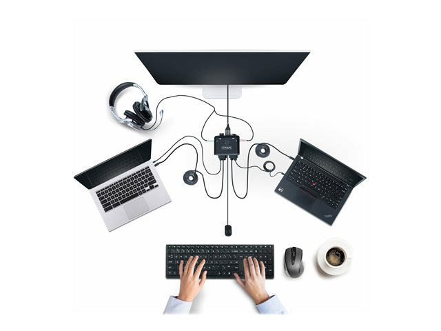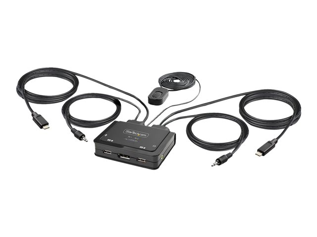 StarTech.com 2-Port USB-C Cable KVM Switch, 4K 60Hz DisplayPort Output, Compact KVM with 4ft/1.2m USB Type-C/Audio Integrated Cables, Bus Powered - Remote Push-Button/Hotkey Switching (C2-D46-UC2-CBL-KVM) - Commutateur écran-clavier-souris/audio - compact - 2 x KVM / audio - 1 utilisateur local - de bureau C2-D46-UC2-CBL-KVM